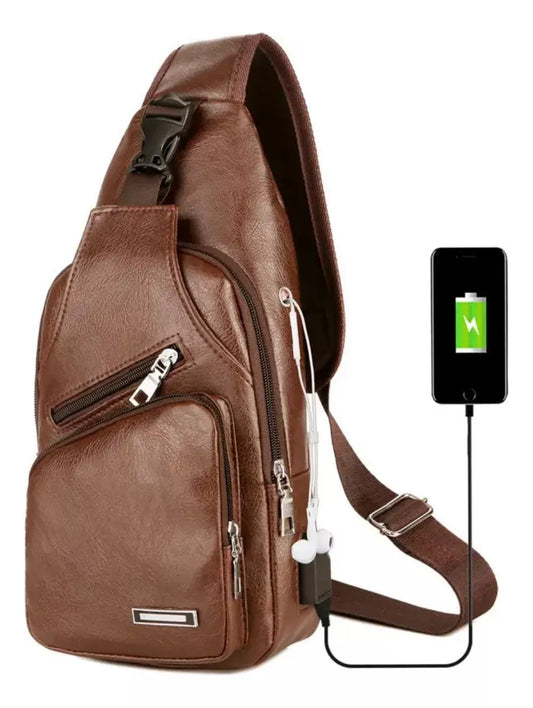 Morral Bandolera Mochila Smart Mini Eco Cuero Salida Usb