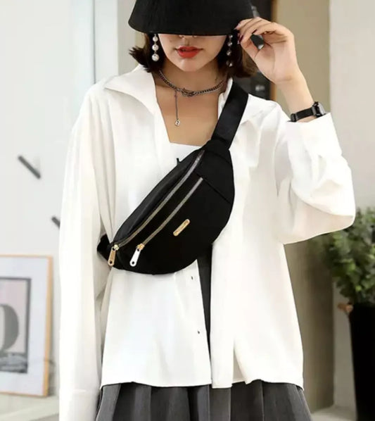 Riñonera Cruzada De Dama Bolso Impermeable Cierres Dorados