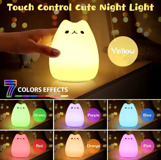 Velador Gato Lampara Gatito Recargable Luz De Noche Silicona