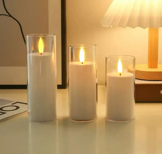 Set X3 Velas Led Acrilico Con Movimiento Decoracion Eventos