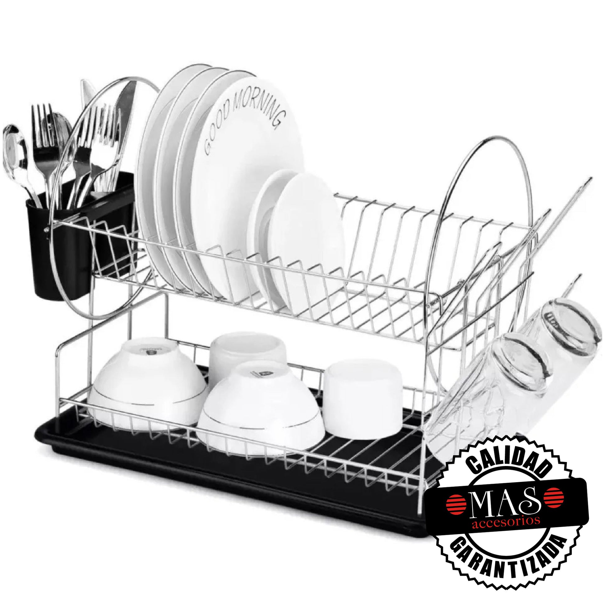 Seca Platos Cromado Con Bandeja Y Cubiertero 2 Niveles