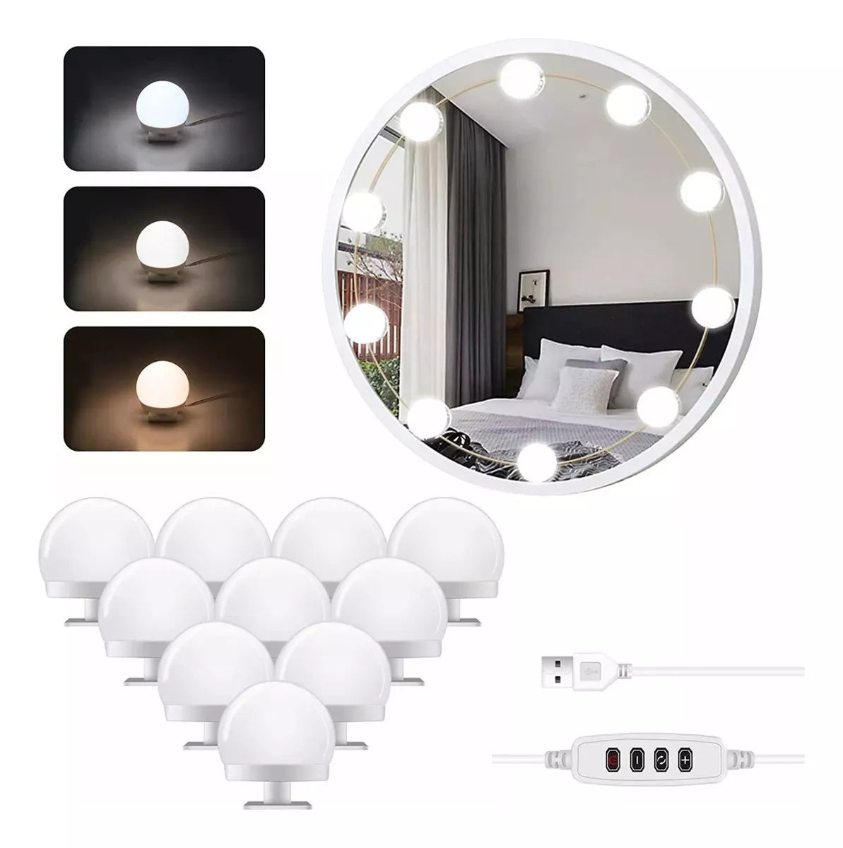 Luces Led Usb P/espejo Camarin 10 Focos Maquillaje Adhesivas