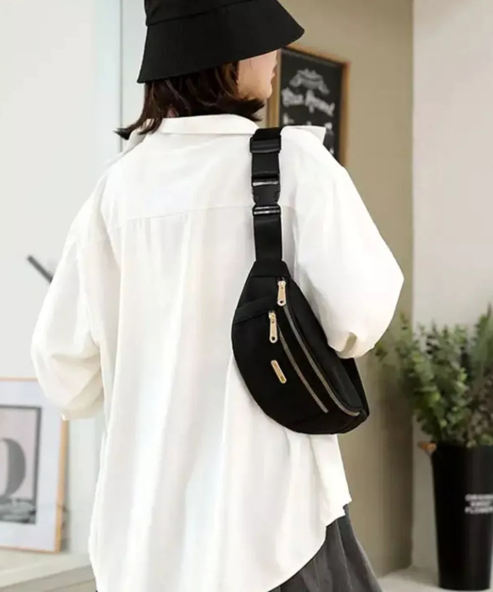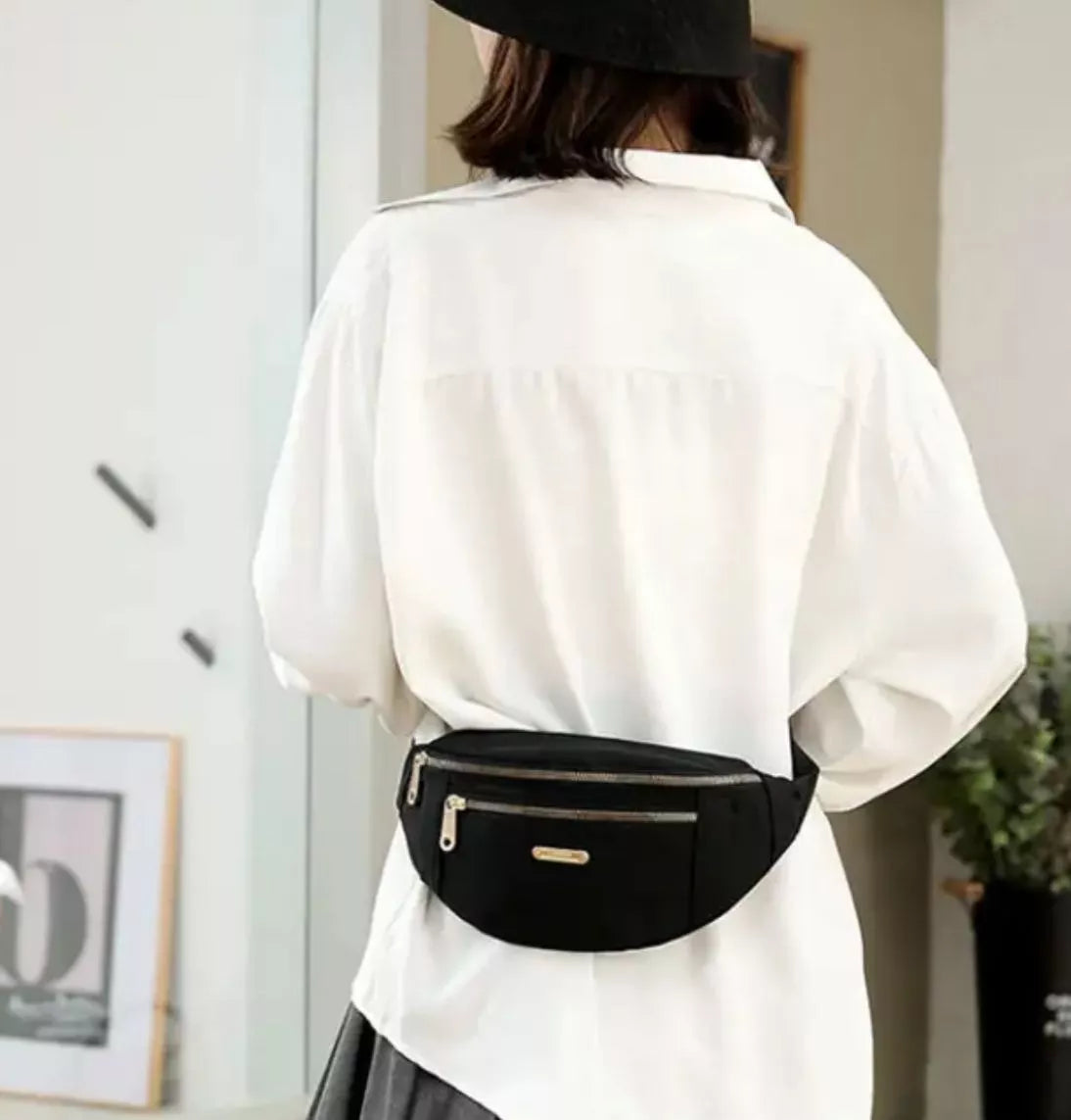 Riñonera Cruzada De Dama Bolso Impermeable Cierres Dorados