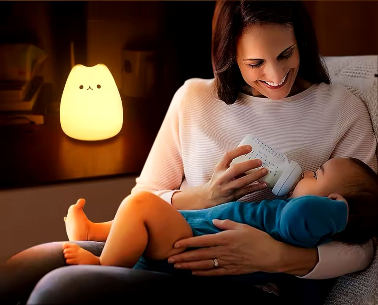 Velador Gato Lampara Gatito Recargable Luz De Noche Silicona